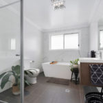 This home was custom designed for the client to fit on a 450sqm block. The client wanted focus on the kitchen and entertaining areas, which they mostly enjoy the time with their family. The home consists of a huge kitchen, 4 bedrooms, upstairs sitting area, large walk in robe which leads to ensuite, theatre, and combined lounge and dining.